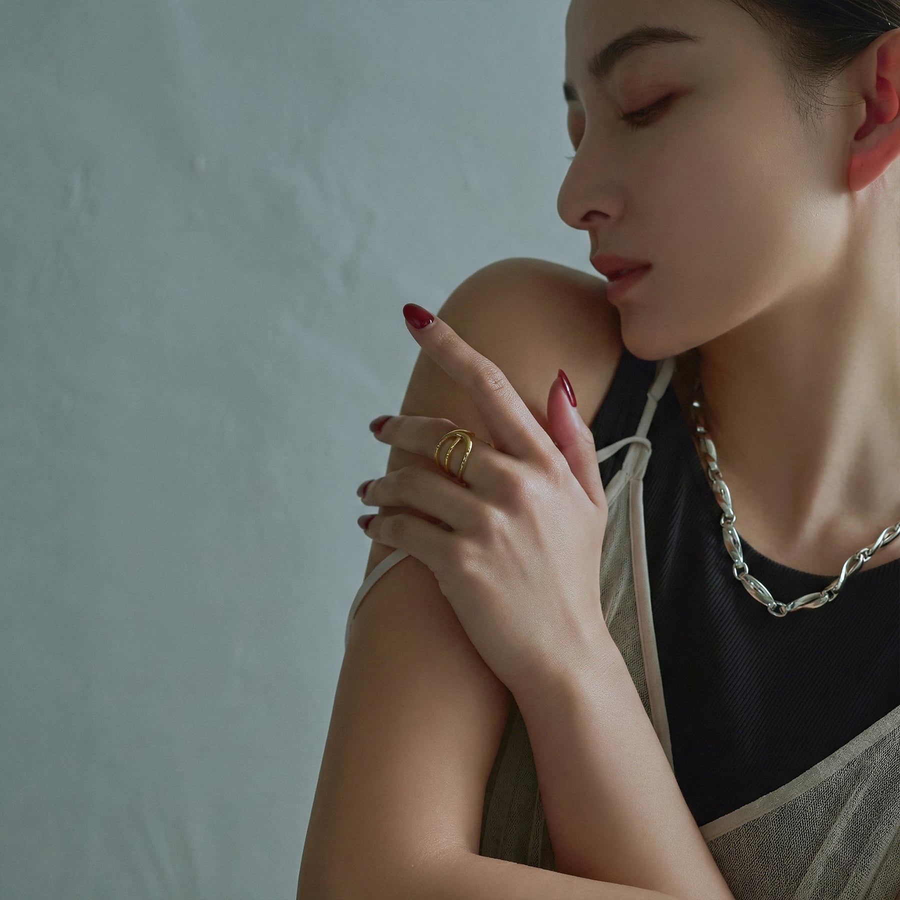 自然が作り出す美しい曲線とモダンで構築的な曲線との融合を根底に、上下左右が対象ではなく流れるように移り変わる様を表現。
